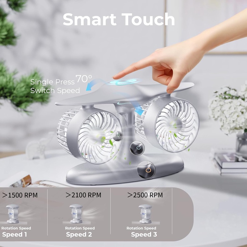 Desk Fan, Wireless Rechargeable Fan for Bedroom, craft Appearance Design, Small Portable and Quiet Table Fan for Home, Office, Kitchen, 3 Speeds SILVER